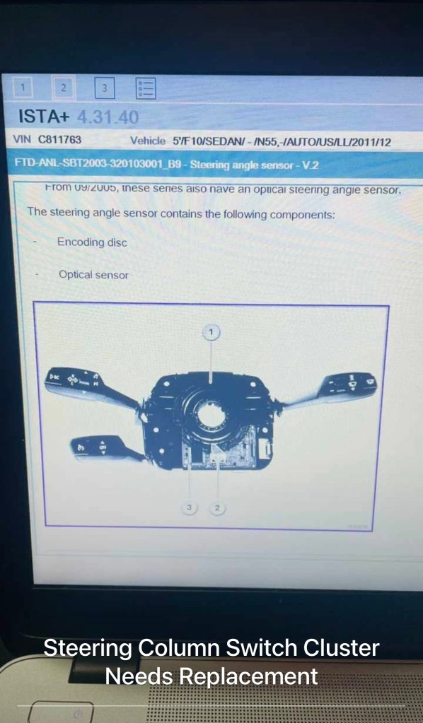 BMW 535xi F10 – Steering Angle Sensor Calibration. Steering Column Switch Cluster Needs Replacement Cesar Martinez Uncategorized November 23, 2023 1 Minute Share this: Click to share on X (Opens in new window) X Click to share on Facebook (Opens in new window) Facebook Like Loading... Published by Cesar Martinez View all posts by Cesar Martinez Published November 23, 2023