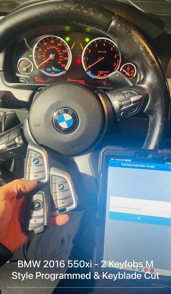 BMW 2016 550xi – 2 Keyfob M Style Programmed & Keyblade Cut Cesar Martinez Uncategorized December 1, 2023 1 Minute Share this: Click to share on X (Opens in new window) X Click to share on Facebook (Opens in new window) Facebook Like Loading... Published by Cesar Martinez View all posts by Cesar Martinez Published December 1, 2023
