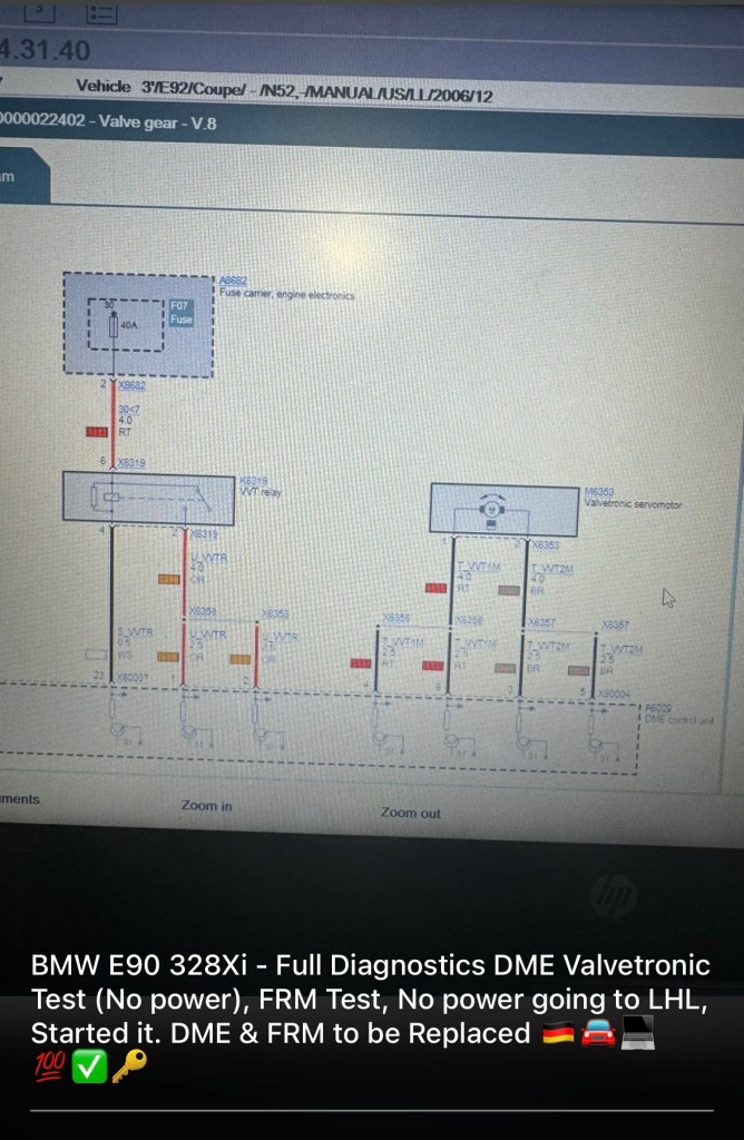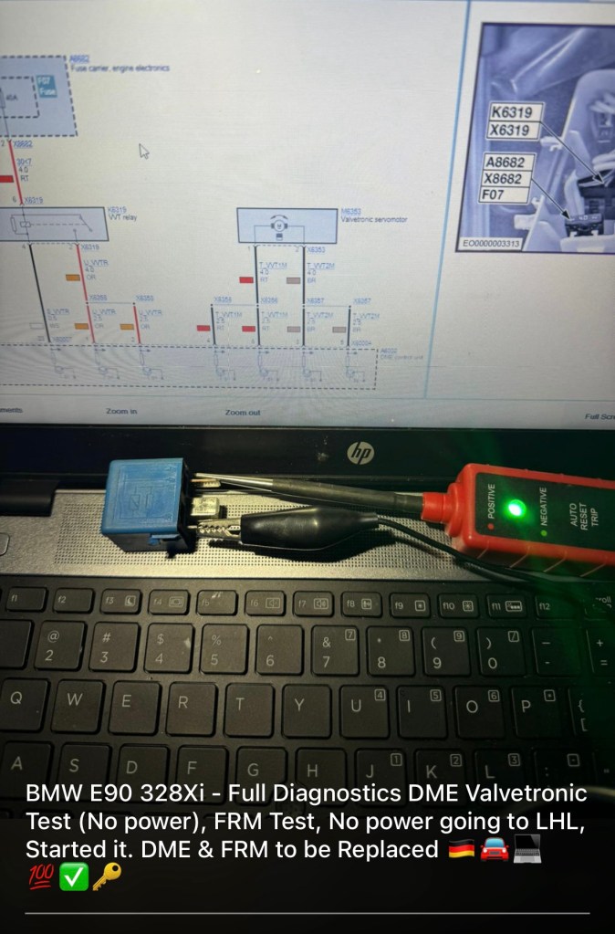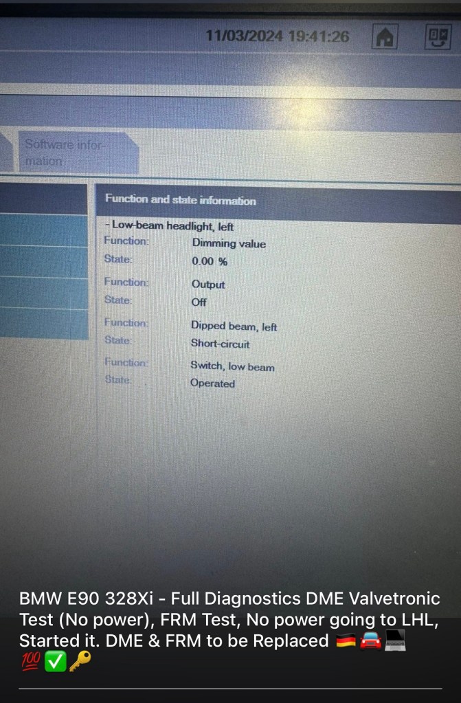 BMW E90 328Xi – Full Diagnostics DME Valvetronic Test (No power), FRM Test, No power going to LHL, Started it. DME & FRM to be Replaced 🇩🇪🚘💻💯✅🔑 Cesar Martinez Uncategorized March 11, 2024 1 Minute Share this: Click to share on X (Opens in new window) X Click to share on Facebook (Opens in new window) Facebook Like Loading... Published by Cesar Martinez View all posts by Cesar Martinez Published March 11, 2024