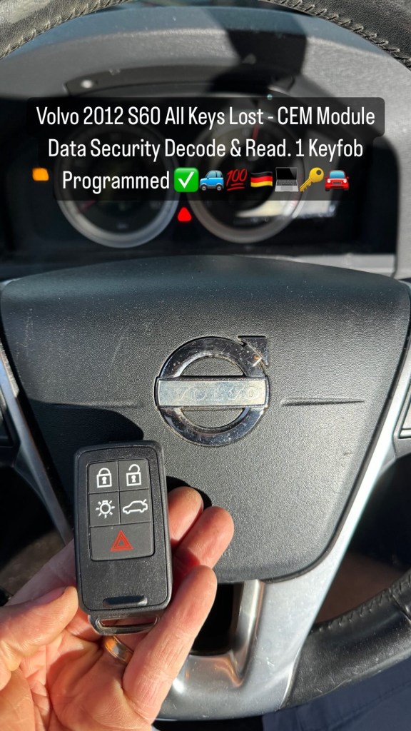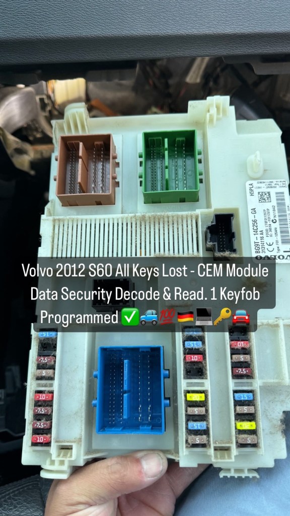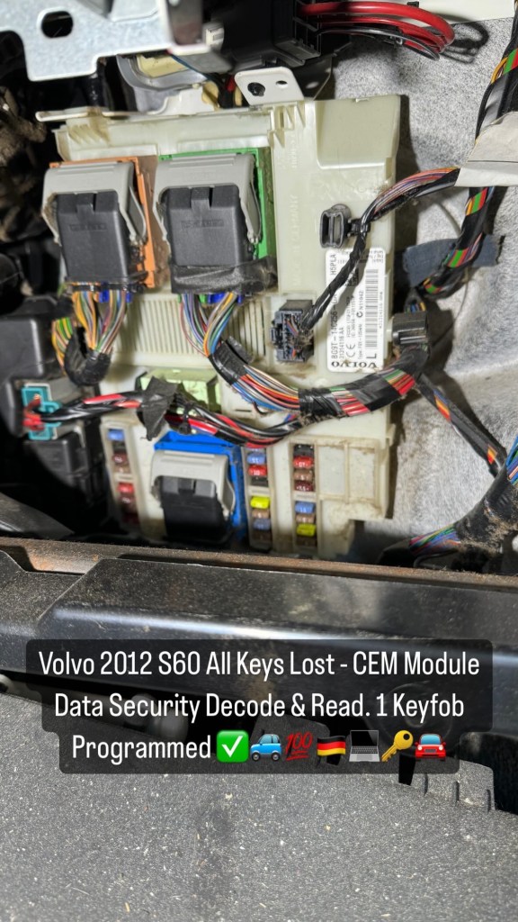 Volvo 2012 S60 All Keys Lost – CEM Module Data Security Decode & Read. 1 Keyfob Programmed ✅🚙💯🇩🇪💻🔑🚘 Cesar Martinez Uncategorized March 20, 2024 1 Minute Share this: Click to share on X (Opens in new window) X Click to share on Facebook (Opens in new window) Facebook Like Loading... Published by Cesar Martinez View all posts by Cesar Martinez Published March 20, 2024