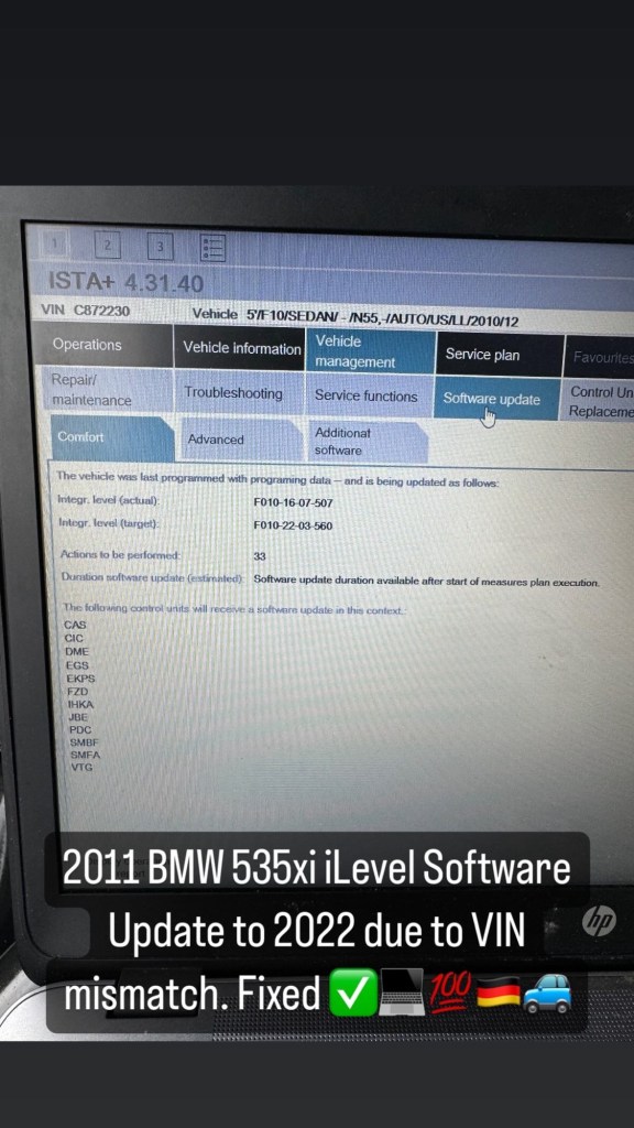 2011 BMW 535xi iLevel Software Update to 2022 due to VIN mismatch. Fixed ✅💻💯🇩🇪🚙 Cesar Martinez Uncategorized April 10, 2024 1 Minute Share this: Click to share on X (Opens in new window) X Click to share on Facebook (Opens in new window) Facebook Like Loading... Published by Cesar Martinez View all posts by Cesar Martinez Published April 10, 2024