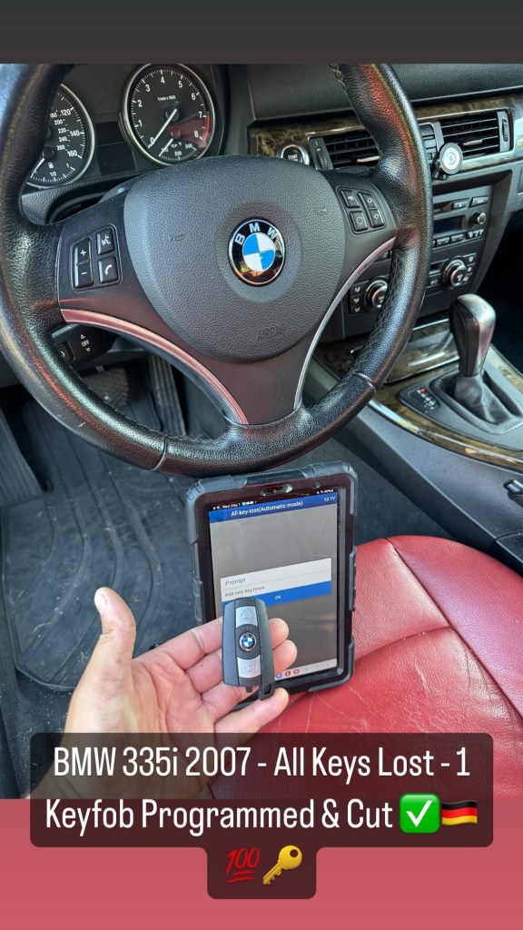 BMW 335i 2007 – All Keys Lost – 1 Keyfob Programmed & Cut ✅🇩🇪💯🔑 Cesar Martinez Uncategorized May 1, 2024 1 Minute Share this: Click to share on X (Opens in new window) X Click to share on Facebook (Opens in new window) Facebook Like Loading... Published by Cesar Martinez View all posts by Cesar Martinez Published May 1, 2024