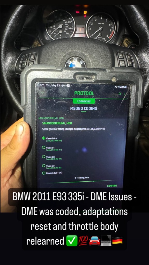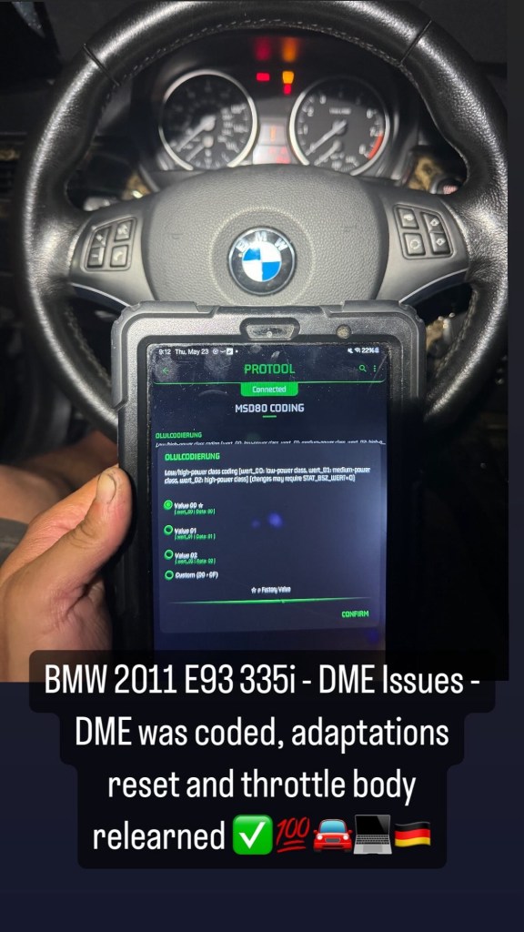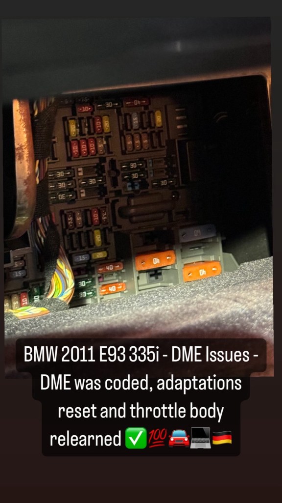 BMW 2011 E93 335i – DME Issues – DME was coded, adaptations reset and throttle body relearned ✅💯🚘💻🇩🇪 Cesar Martinez Uncategorized May 23, 2024 1 Minute Share this: Click to share on X (Opens in new window) X Click to share on Facebook (Opens in new window) Facebook Like Loading... Published by Cesar Martinez View all posts by Cesar Martinez Published May 23, 2024