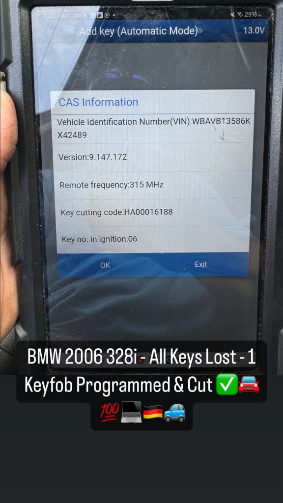 BMW 2006 328i – All Keys Lost – 1 Keyfob Programmed ✅🚘💯💻🇩🇪🚙 Cesar Martinez Uncategorized June 9, 2024 1 Minute Share this: Click to share on X (Opens in new window) X Click to share on Facebook (Opens in new window) Facebook Like Loading... Published by Cesar Martinez View all posts by Cesar Martinez Published June 9, 2024