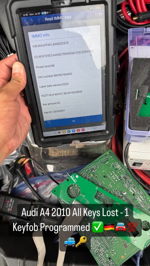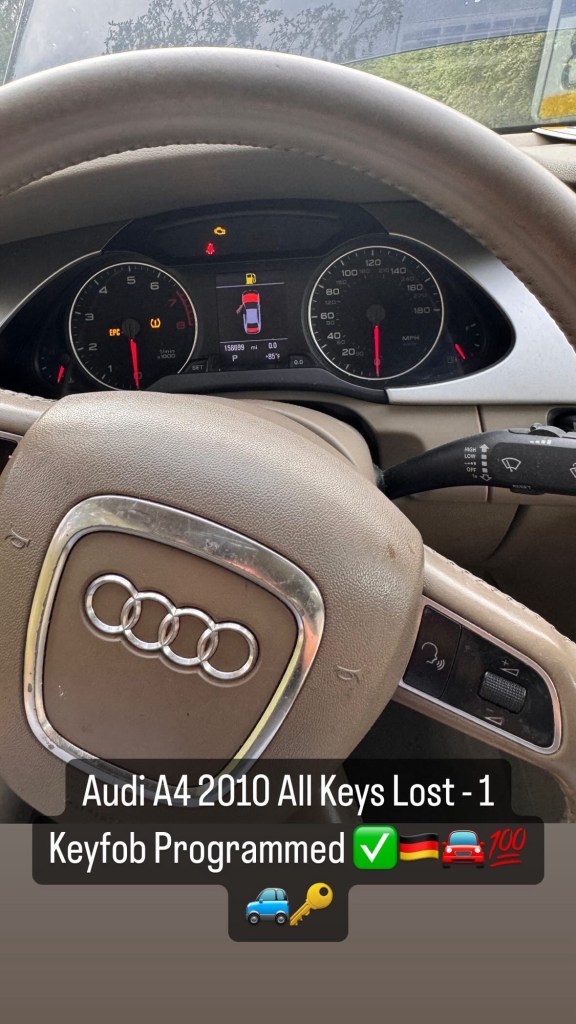 Audi A4 2010 All Keys Lost – 1 Keyfob Programmed ✅🇩🇪🚘💯🚙🔑 Cesar Martinez Uncategorized July 29, 2024 1 Minute Share this: Click to share on X (Opens in new window) X Click to share on Facebook (Opens in new window) Facebook Like Loading... Published by Cesar Martinez View all posts by Cesar Martinez Published July 29, 2024