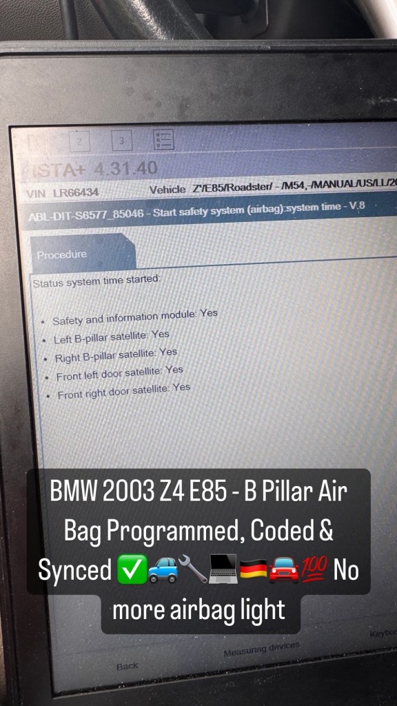 BMW 2003 Z4 E85 – B Pillar Air Bag Programmed, Coded & Synced ✅🚙🔧💻🇩🇪🚘💯 No more airbag light Cesar Martinez Uncategorized August 2, 2024 1 Minute Share this: Click to share on X (Opens in new window) X Click to share on Facebook (Opens in new window) Facebook Like Loading... Published by Cesar Martinez View all posts by Cesar Martinez Published August 2, 2024