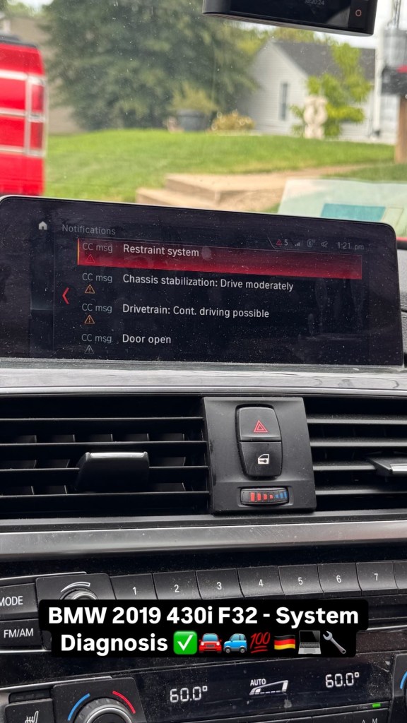 BMW 2019 430i F32 – System Diagnosis ✅🚘🚙💯🇩🇪💻🔧 Cesar Martinez Uncategorized August 17, 2024 1 Minute Share this: Click to share on X (Opens in new window) X Click to share on Facebook (Opens in new window) Facebook Like Loading... Published by Cesar Martinez View all posts by Cesar Martinez Published August 17, 2024