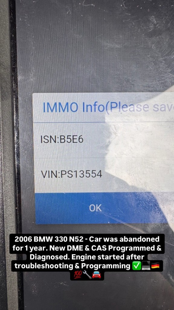 2006 BMW 330 N52 – Car was abandoned for 1 year. New DME & CAS Programmed & Diagnosed. Engine started after troubleshooting & Programming ✅💻🇩🇪💯🔧🚘 Cesar Martinez Uncategorized September 1, 2024 1 Minute Share this: Click to share on X (Opens in new window) X Click to share on Facebook (Opens in new window) Facebook Like Loading... Published by Cesar Martinez View all posts by Cesar Martinez Published September 1, 2024