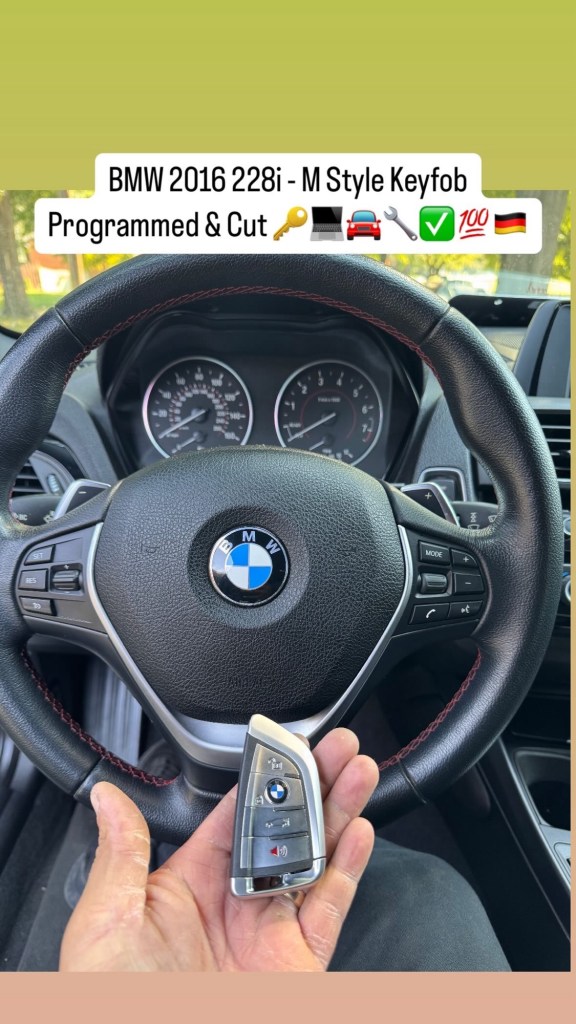 BMW 2016 228i – M Style Keyfob Programmed & Cut ๐๐ป๐๐งโ ๐ฏ๐ฉ๐ช Cesar Martinez Uncategorized October 13, 2024 1 Minute Share this: Click to share on X (Opens in new window) X Click to share on Facebook (Opens in new window) Facebook Like Loading... Published by Cesar Martinez View all posts by Cesar Martinez Published October 13, 2024