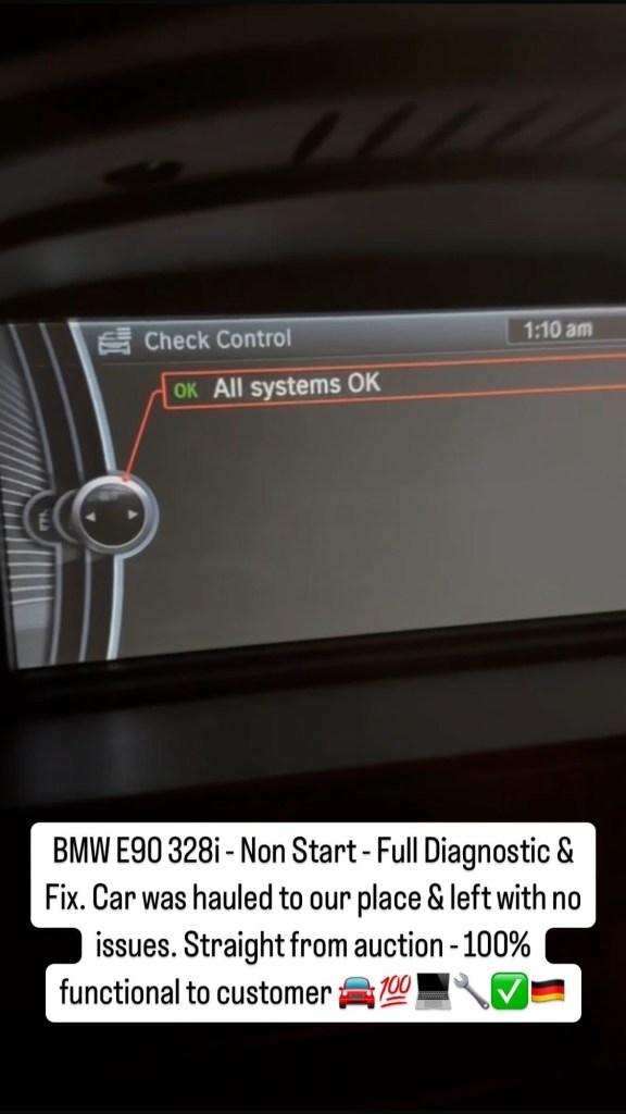 BMW E90 328i – Non Start – Full Diagnostic & Fix. Car was hauled to our place & left with no issues. Straight from auction – 100% functional to customer ๐๐ฏ๐ป๐งโ ๐ฉ๐ช