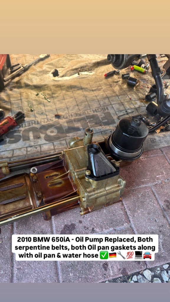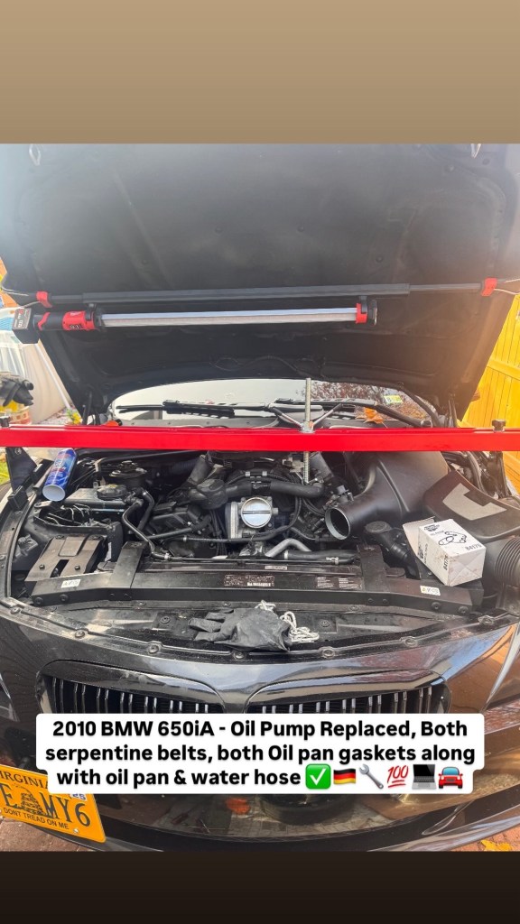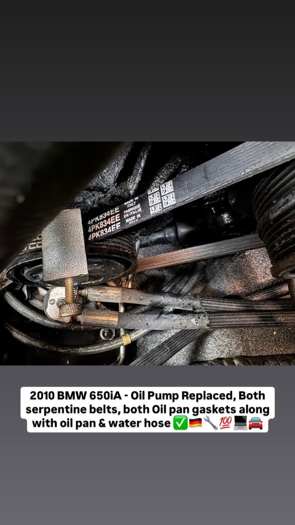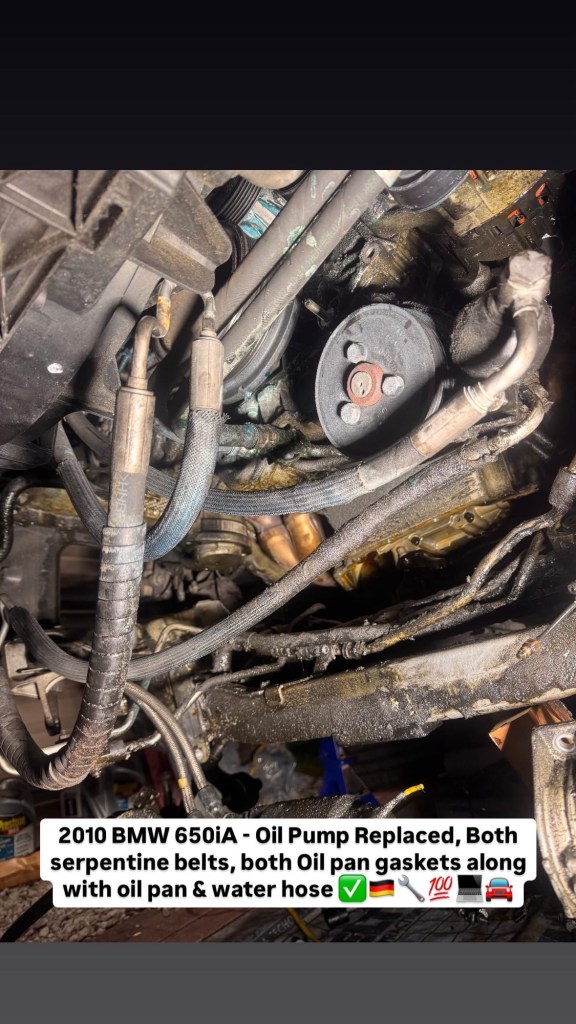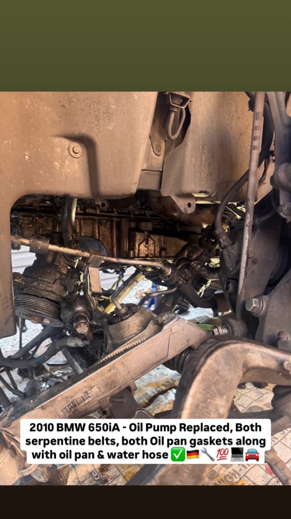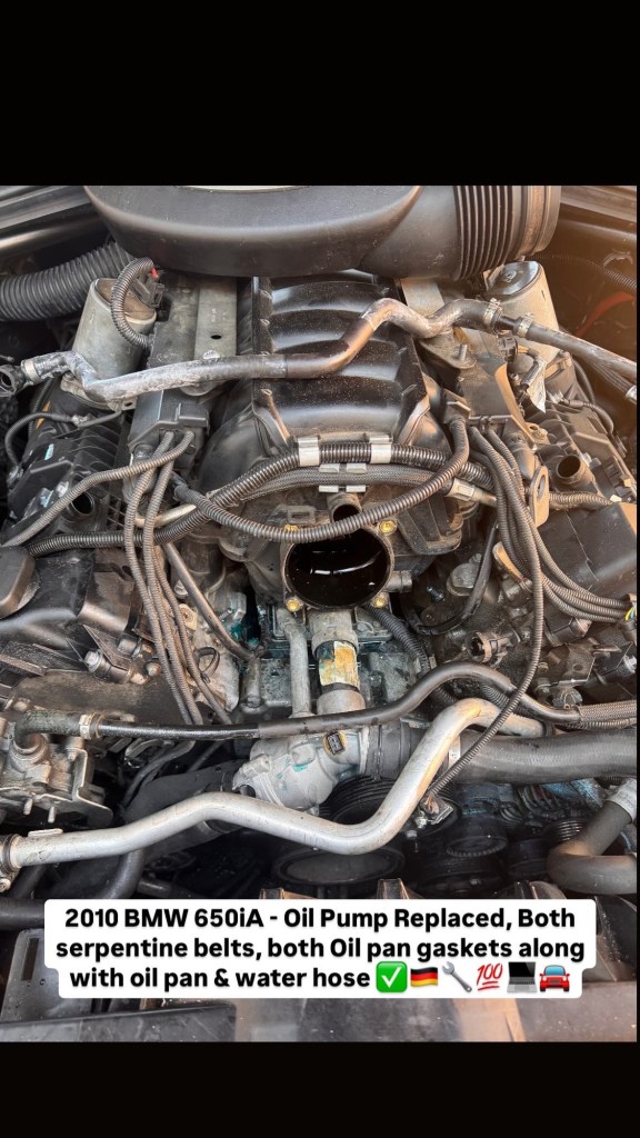 2010 BMW 650iA – Oil Pump Replaced, Both serpentine belts, both Oil pan gaskets along with oil pan & water hose ✅🇩🇪🔧💯💻🚘 Cesar Martinez Uncategorized December 8, 2024 1 Minute Share this: Click to share on X (Opens in new window) X Click to share on Facebook (Opens in new window) Facebook Like Loading... Published by Cesar Martinez View all posts by Cesar Martinez Published December 8, 2024