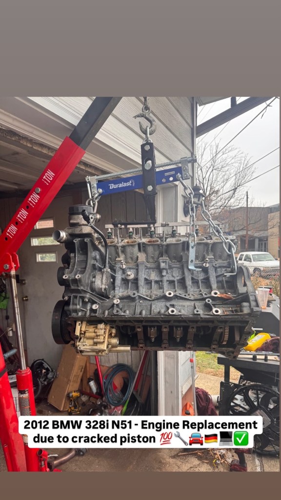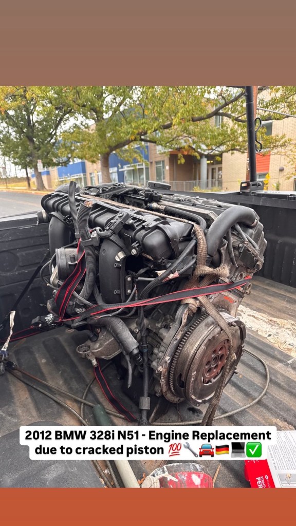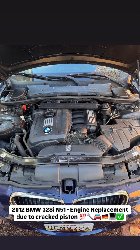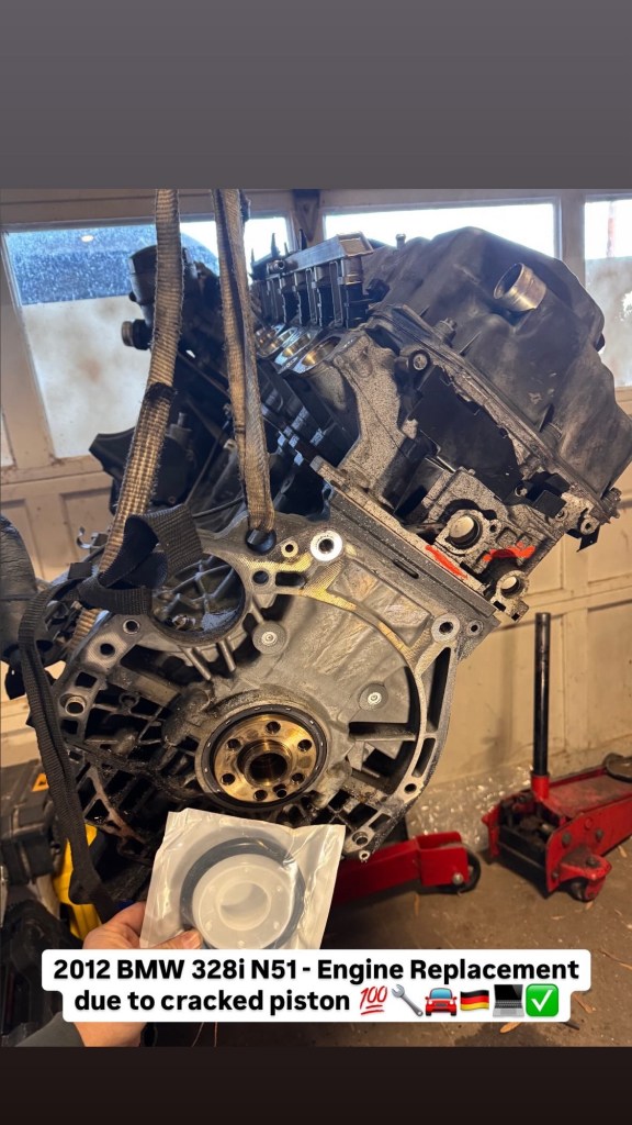 2012 BMW 328i N51 – Engine Replacement due to cracked piston 💯🔧🚘🇩🇪💻✅ Cesar Martinez Uncategorized December 22, 2024 1 Minute Share this: Click to share on X (Opens in new window) X Click to share on Facebook (Opens in new window) Facebook Like Loading... Published by Cesar Martinez View all posts by Cesar Martinez Published December 22, 2024