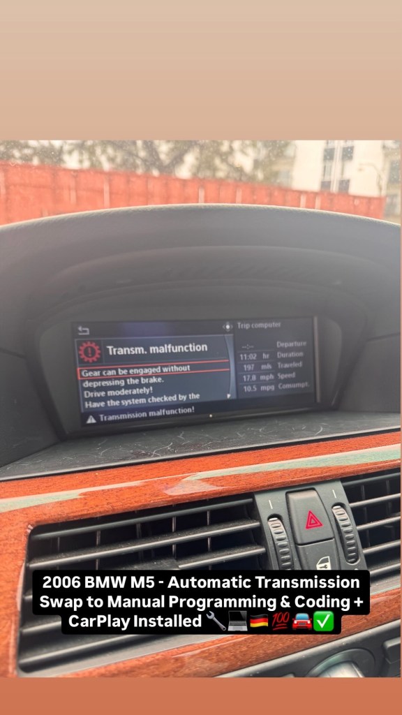 2006 BMW M5 Automatic Transmission Swap to Manual Programming & Coding + CarPlay Installed 🔧💻🇩🇪💯🚗✅🔟 Cesar Martinez Uncategorized February 25, 2025March 19, 2025 1 Minute Share this: Click to share on X (Opens in new window) X Click to share on Facebook (Opens in new window) Facebook Like Loading... Published by Cesar Martinez View all posts by Cesar Martinez Published February 25, 2025March 19, 2025