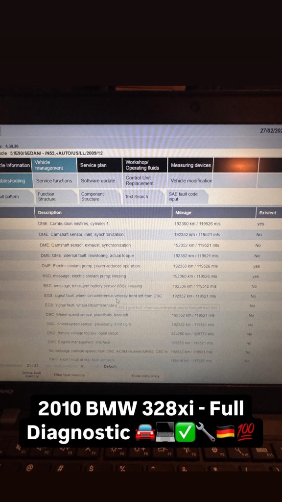 2010 BMW 328xi – Full Diagnostic 🚘💻✅🔧🇩🇪💯 Cesar Martinez Uncategorized February 27, 2025 1 Minute Share this: Click to share on X (Opens in new window) X Click to share on Facebook (Opens in new window) Facebook Like Loading... Published by Cesar Martinez View all posts by Cesar Martinez Published February 27, 2025