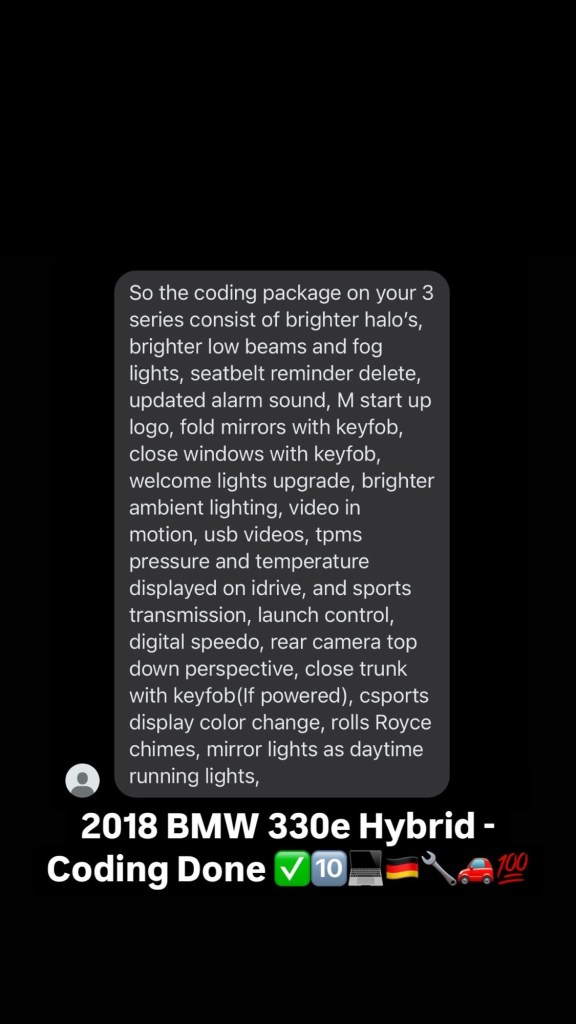 2018 BMW 330e Hybrid – Coding Done ✅🔟💻🇩🇪🔧🚗💯 Cesar Martinez Uncategorized March 24, 2025 1 Minute Share this: Click to share on X (Opens in new window) X Click to share on Facebook (Opens in new window) Facebook Like Loading... Published by Cesar Martinez View all posts by Cesar Martinez Published March 24, 2025