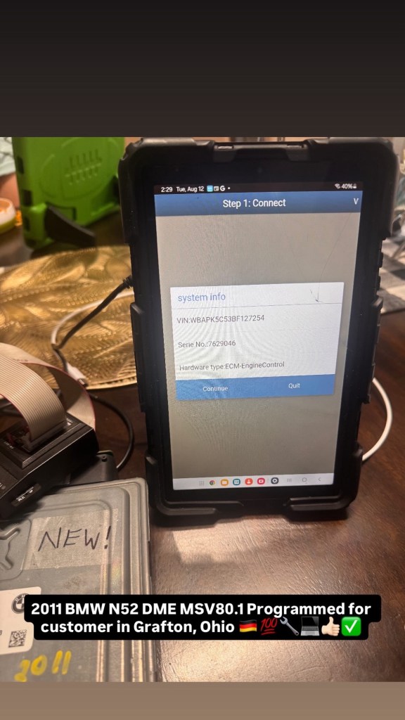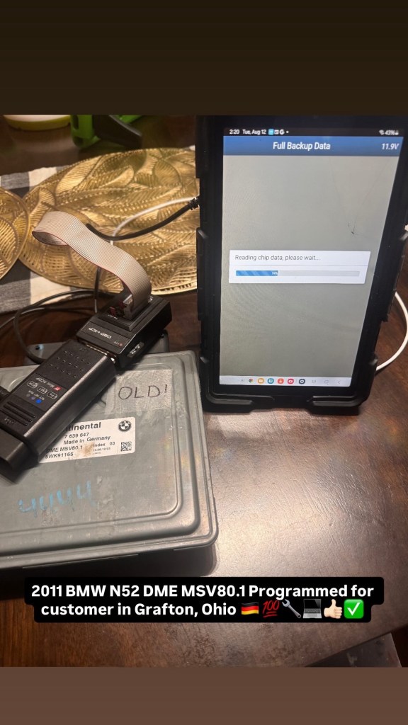 2011 BMW N52 DME MSV80.1 Programmed for customer in Grafton, Ohio 🇩🇪💯🔧💻👍🏻✅ Cesar Martinez Uncategorized August 14, 2025 1 Minute Share this: Click to share on X (Opens in new window) X Click to share on Facebook (Opens in new window) Facebook Like Loading... Published by Cesar Martinez View all posts by Cesar Martinez Published August 14, 2025