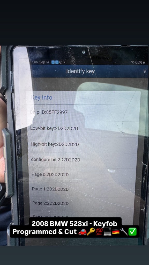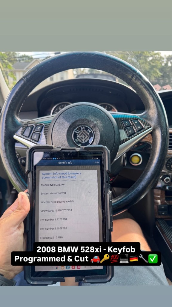 2008 BMW 528xi – Keyfob Programmed & Cut ๐๐๐ฏ๐ป๐ฉ๐ช๐งโ Cesar Martinez Uncategorized September 14, 2025 1 Minute Share this: Click to share on X (Opens in new window) X Click to share on Facebook (Opens in new window) Facebook Like Loading... Published by Cesar Martinez View all posts by Cesar Martinez Published September 14, 2025