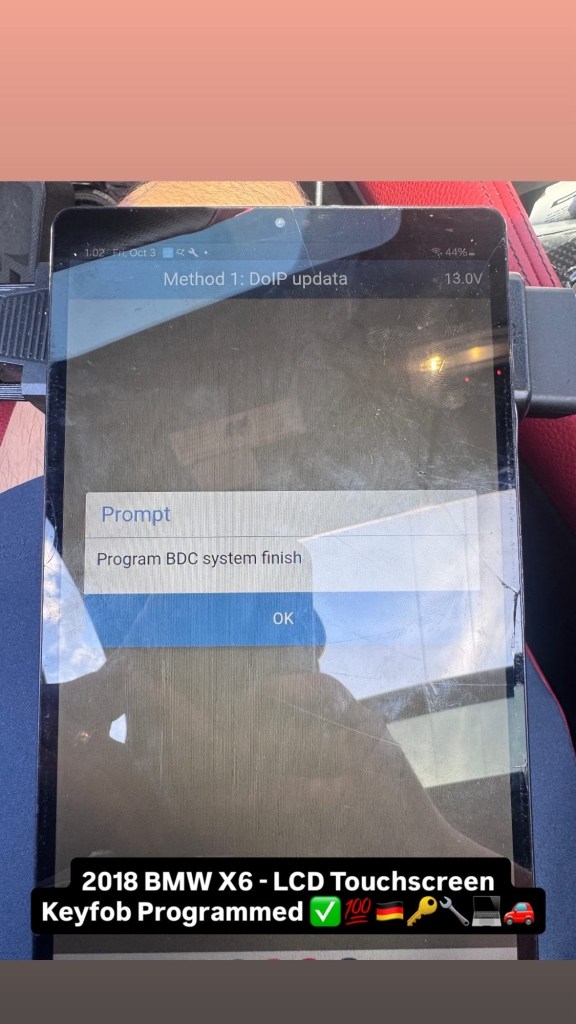2018 BMW X6 – LCD Touchscreen Keyfob Programmed ✅💯🇩🇪🔑🔧💻🚗 Cesar Martinez Uncategorized October 3, 2025 1 Minute Share this: Click to share on X (Opens in new window) X Click to share on Facebook (Opens in new window) Facebook Like Loading... Published by Cesar Martinez View all posts by Cesar Martinez Published October 3, 2025
