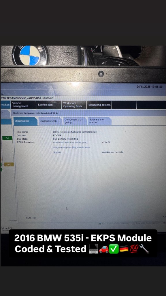 2016 BMW 535i – EKPS Module Coded & Tested 💻🚗✅🇩🇪💯🔧 Cesar Martinez Uncategorized November 4, 2025 1 Minute Share this: Click to share on X (Opens in new window) X Click to share on Facebook (Opens in new window) Facebook Like Loading... Published by Cesar Martinez View all posts by Cesar Martinez Published November 4, 2025