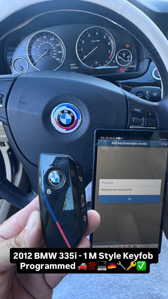 2012 BMW 335i – 1 M Style Keyfob Programmed 🚗💯💻🇩🇪🔧🔑✅ Cesar Martinez Uncategorized November 6, 2025 1 Minute Share this: Click to share on X (Opens in new window) X Click to share on Facebook (Opens in new window) Facebook Like Loading... Published by Cesar Martinez View all posts by Cesar Martinez Published November 6, 2025