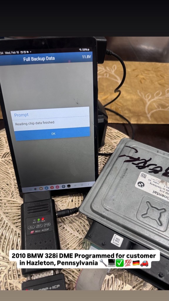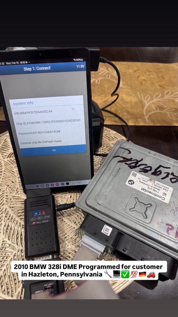 2010 BMW 328i DME Programmed for customer in Hazleton, Pennsylvania 🔧💻✅💯🇩🇪🚗 Cesar Martinez Uncategorized February 18, 2026 1 Minute Share this: Share on X (Opens in new window) X Share on Facebook (Opens in new window) Facebook Like Loading... Published by Cesar Martinez View all posts by Cesar Martinez Published February 18, 2026