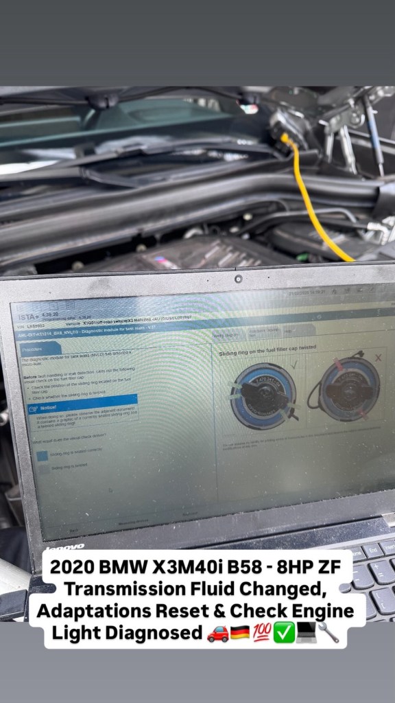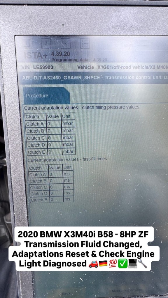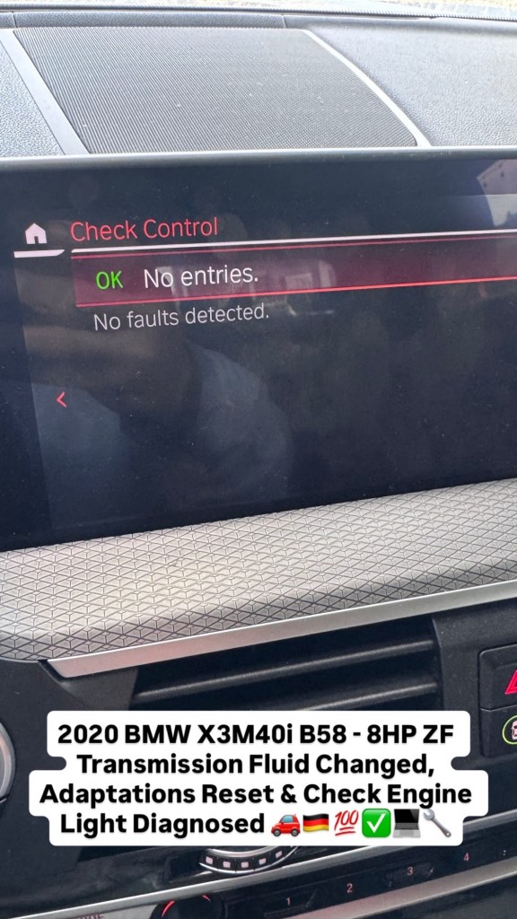 2020 BMW X3M40i B58 – 8HP ZF Transmission Fluid Changed, Adaptations Reset & Check Engine Light Diagnosed 🚗🇩🇪💯✅💻🔧 Cesar Martinez Uncategorized February 21, 2026 1 Minute Share this: Share on X (Opens in new window) X Share on Facebook (Opens in new window) Facebook Like Loading... Published by Cesar Martinez View all posts by Cesar Martinez Published February 21, 2026