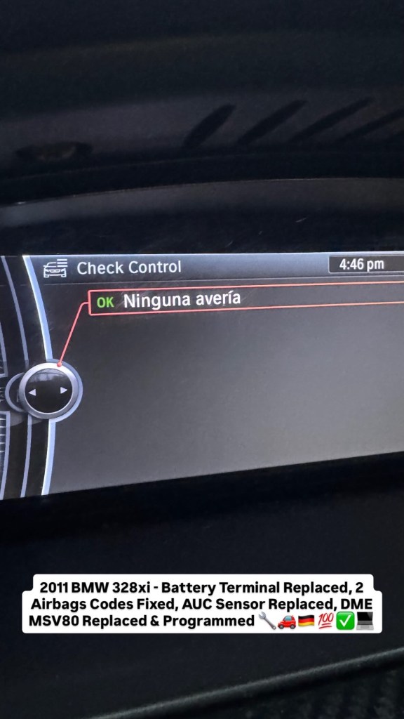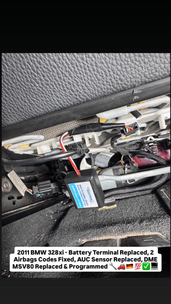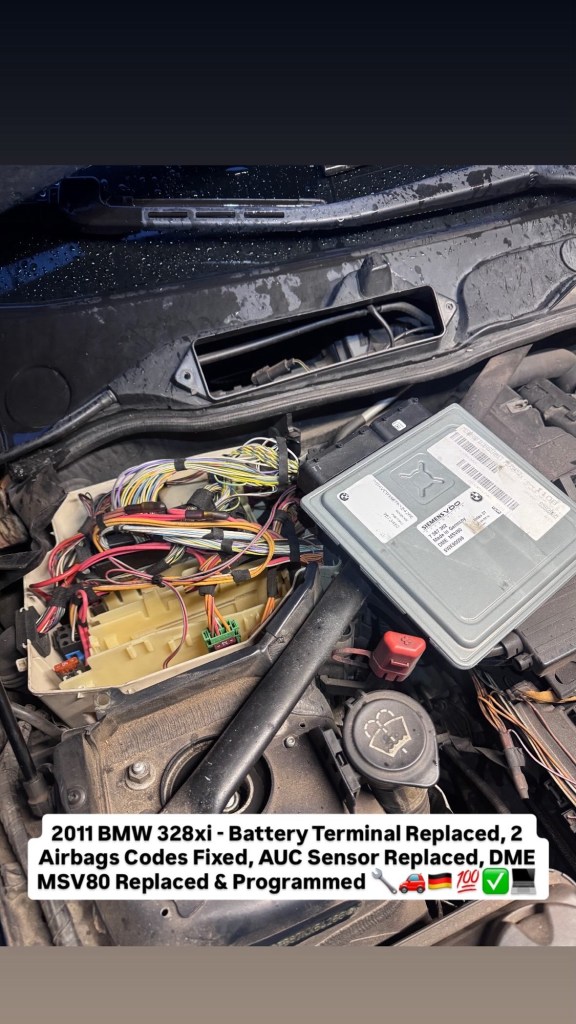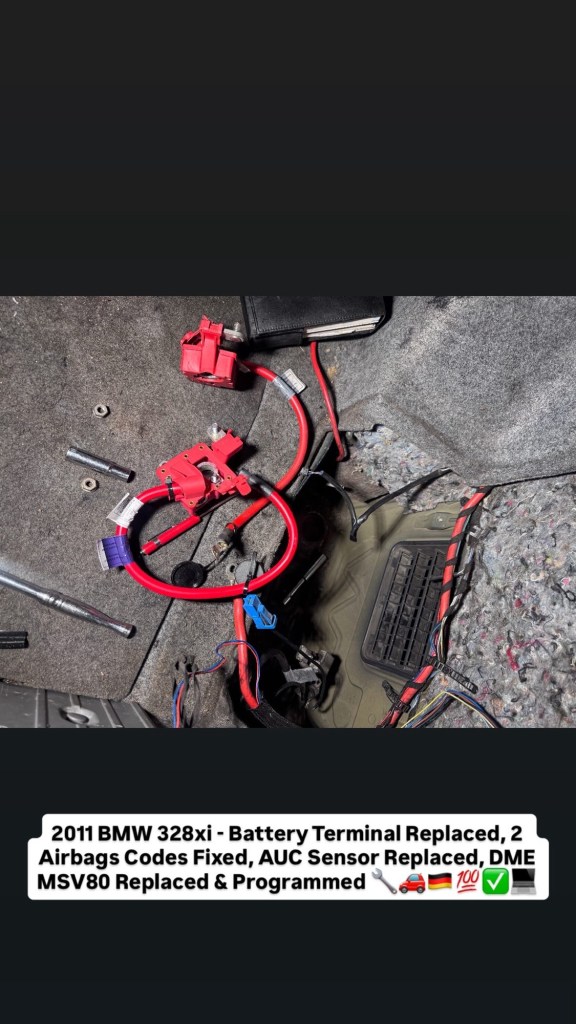 2011 BMW 328xi – Battery Terminal Replaced, 2 Airbags Codes Fixed, AUC Sensor Replaced, DME MSV80 Replaced & Programmed 🔧🚗🇩🇪💯✅💻 Cesar Martinez Uncategorized February 22, 2026 1 Minute Share this: Share on X (Opens in new window) X Share on Facebook (Opens in new window) Facebook Like Loading... Published by Cesar Martinez View all posts by Cesar Martinez Published February 22, 2026