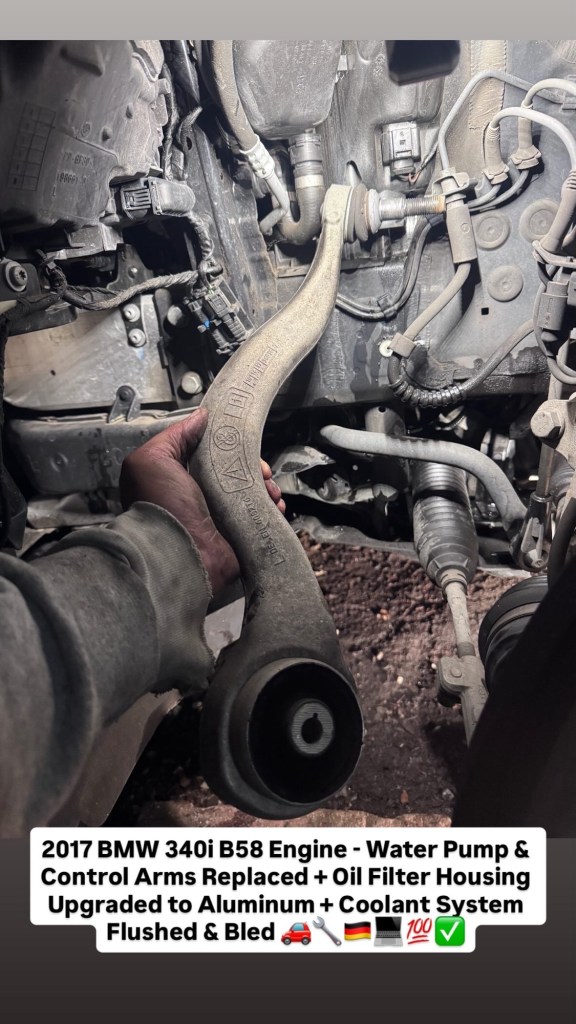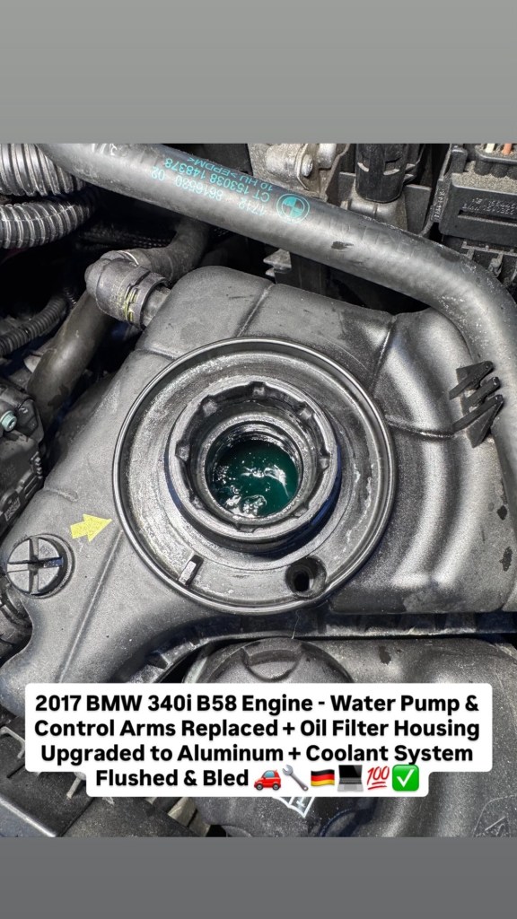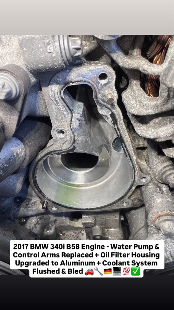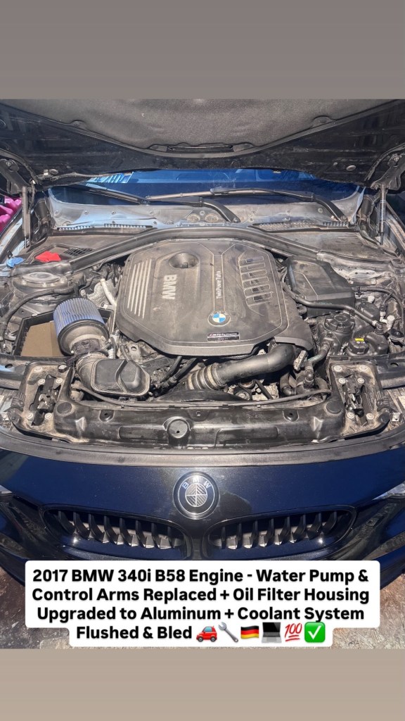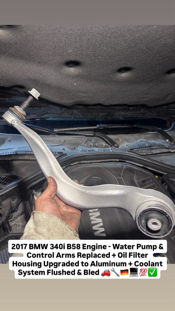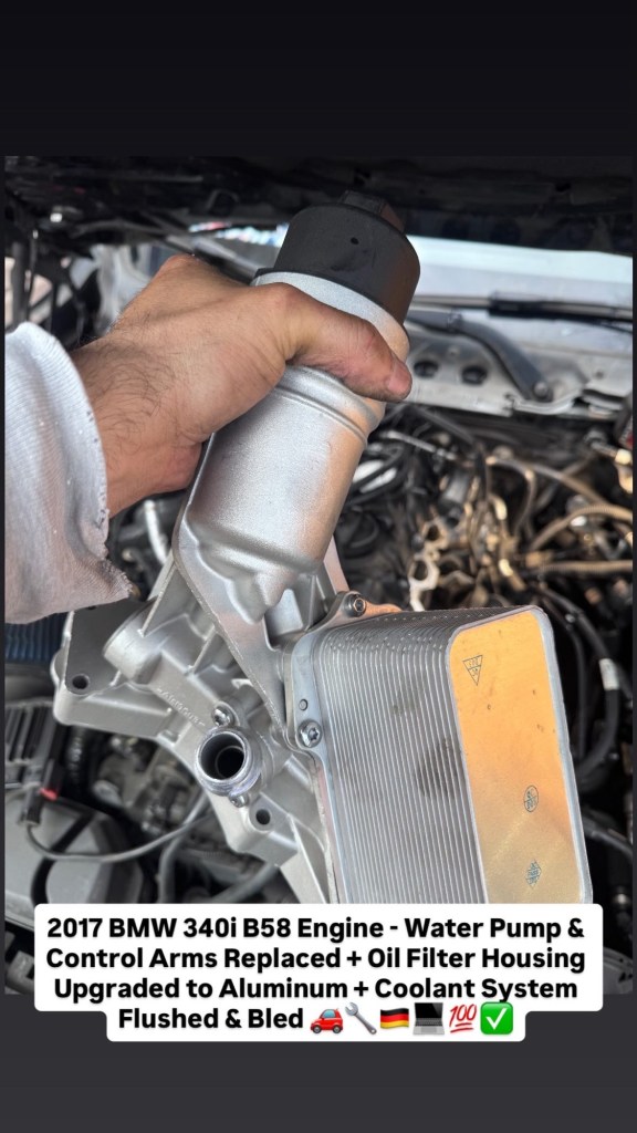 2017 BMW 340i B58 Engine – Water Pump & Control Arms Replaced + Oil Filter Housing Upgraded to Aluminum + Coolant System Flushed & Bled 🚗🔧🇩🇪💻💯✅ Cesar Martinez Uncategorized March 14, 2026 1 Minute Share this: Share on X (Opens in new window) X Share on Facebook (Opens in new window) Facebook Like Loading... Published by Cesar Martinez View all posts by Cesar Martinez Published March 14, 2026