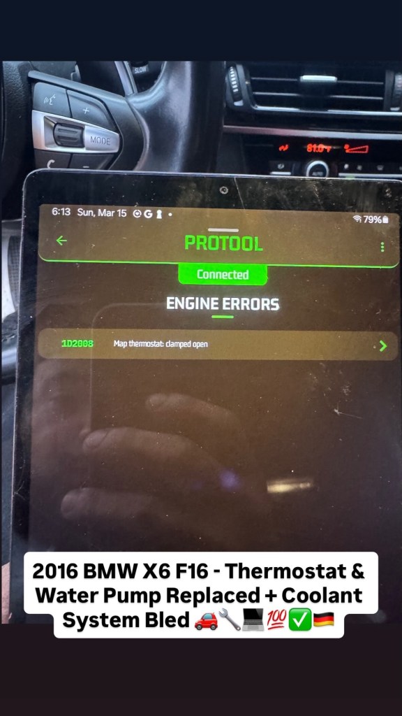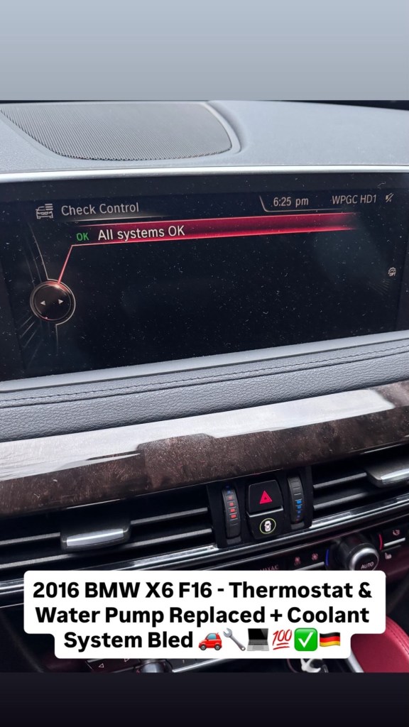 2016 BMW X6 F16 – Thermostat & Water Pump Replaced + Coolant System Bled 🚗🔧💻💯✅🇩🇪 Cesar Martinez Uncategorized March 15, 2026 1 Minute Share this: Share on X (Opens in new window) X Share on Facebook (Opens in new window) Facebook Like Loading... Published by Cesar Martinez View all posts by Cesar Martinez Published March 15, 2026