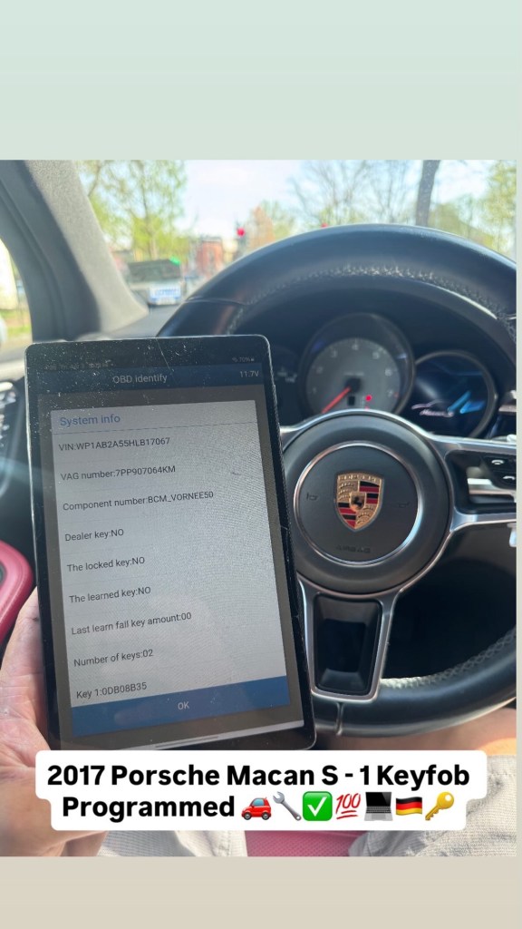 2017 Porsche Macan S – 1 Keyfob Programmed ๐๐งโ ๐ฏ๐ป๐ฉ๐ช๐ Cesar Martinez Uncategorized April 3, 2026 1 Minute Share this: Share on X (Opens in new window) X Share on Facebook (Opens in new window) Facebook Like Loading... Published by Cesar Martinez View all posts by Cesar Martinez Published April 3, 2026