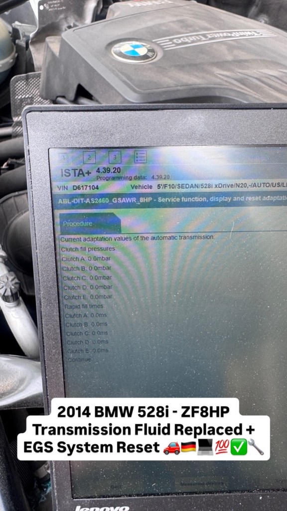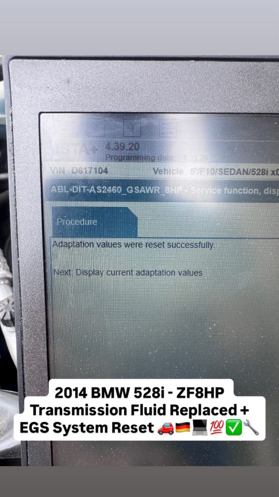 2014 BMW 528i – ZF8HP Transmission Fluid Replaced + EGS System Reset 🚗🇩🇪💻💯✅🔧 Cesar Martinez Uncategorized April 5, 2026 1 Minute Share this: Share on X (Opens in new window) X Share on Facebook (Opens in new window) Facebook Like Loading... Published by Cesar Martinez View all posts by Cesar Martinez Published April 5, 2026