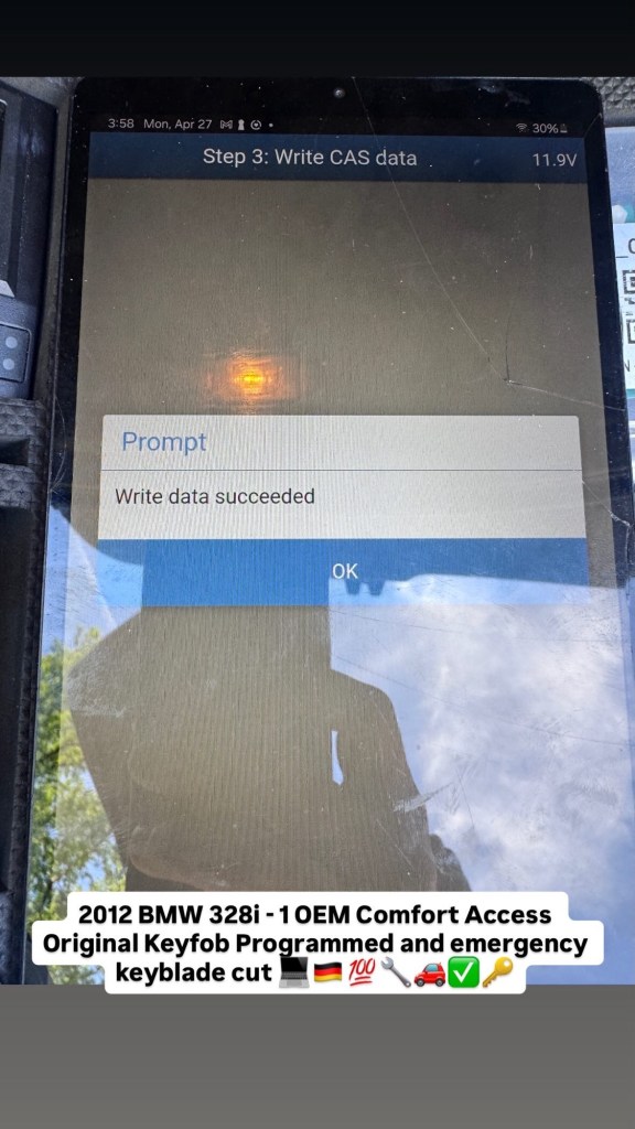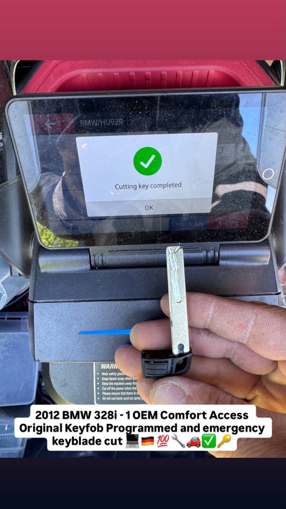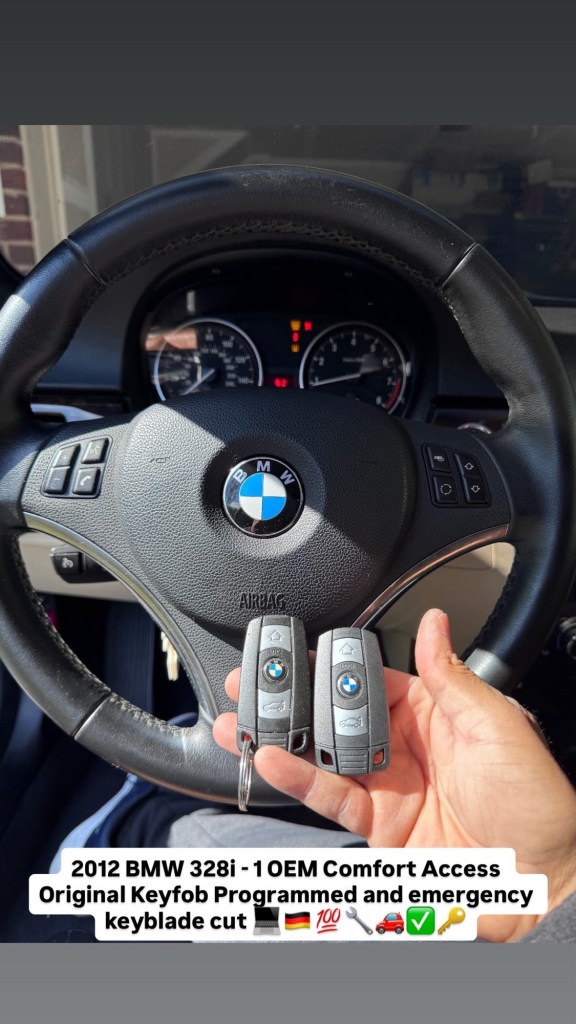 2012 BMW 328i – 1 OEM Comfort Access Original Keyfob Programmed and emergency keyblade cut 💻🇩🇪💯🔧🚗✅🔑 Cesar Martinez Uncategorized April 27, 2026 1 Minute Share this: Share on X (Opens in new window) X Share on Facebook (Opens in new window) Facebook Like Loading... Published by Cesar Martinez View all posts by Cesar Martinez Published April 27, 2026