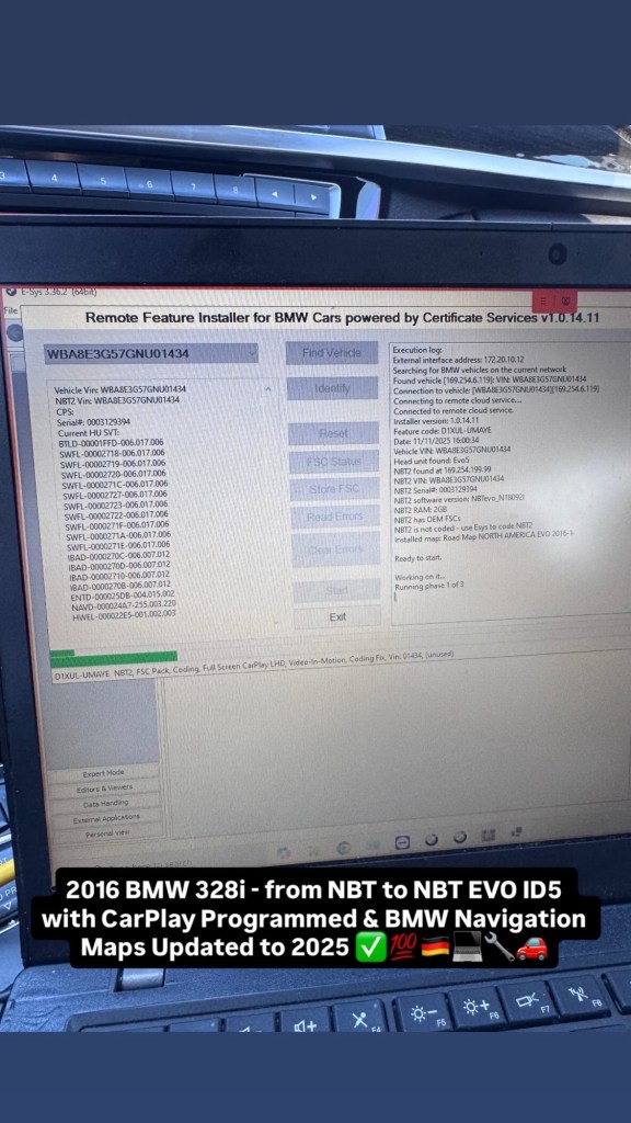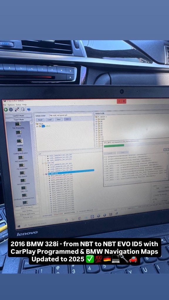 2016 BMW 328i – from NBT to NBT EVO ID5 with CarPlay Programmed & BMW Navigation Maps Updated to 2025 ✅💯🇩🇪💻🔧🚗