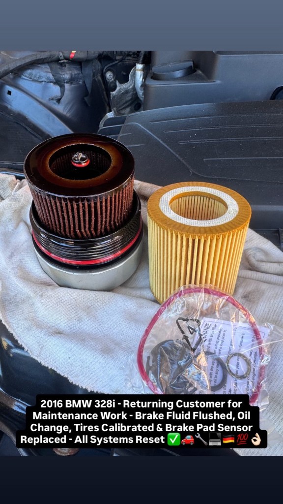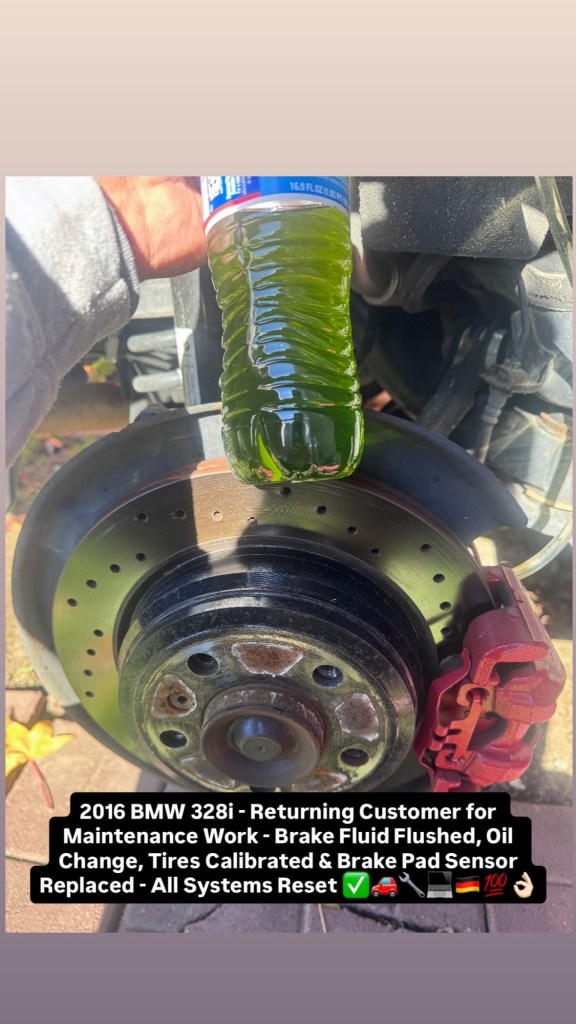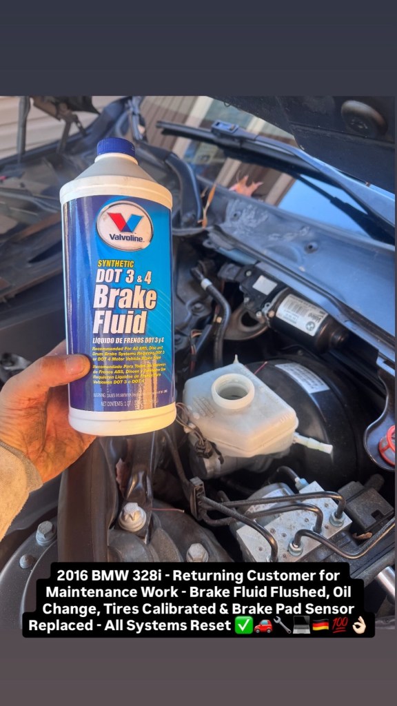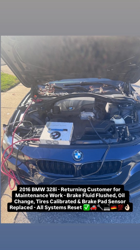 2016 BMW 328i – Returning Customer for Maintenance Work – Brake Fluid Flushed, Oil Change, Tires Calibrated & Brake Pad Sensor Replaced – All Systems Reset ✅🚗🔧💻🇩🇪💯👌🏻