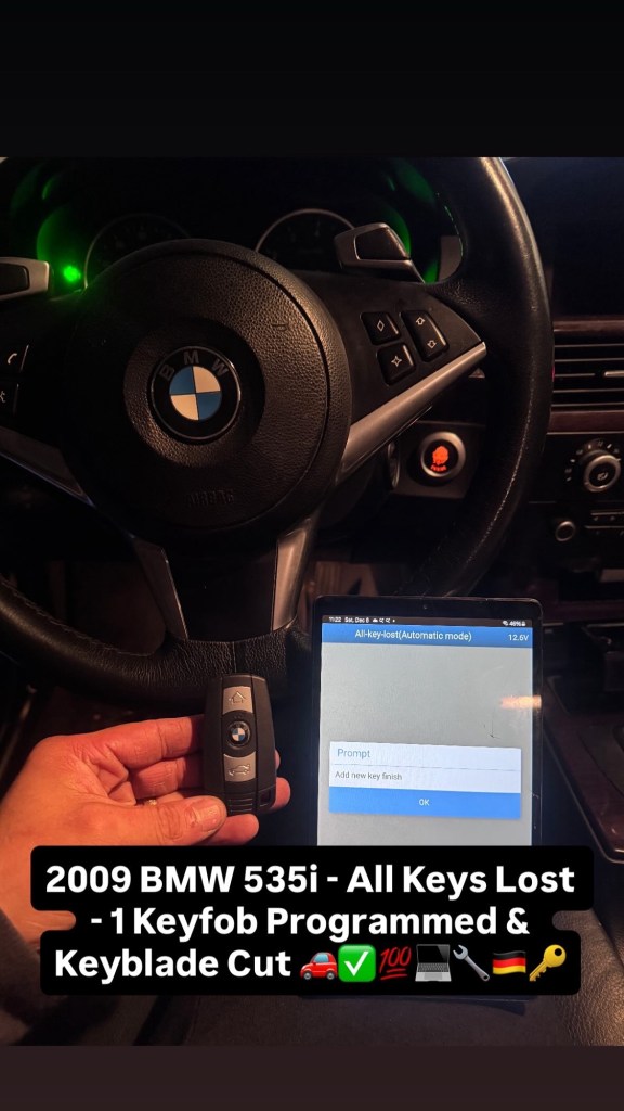 2009 BMW 535i – All Keys Lost – 1 Keyfob Programmed & Keyblade Cut ðŸš—✅💯💻🔧🇩🇪🔑