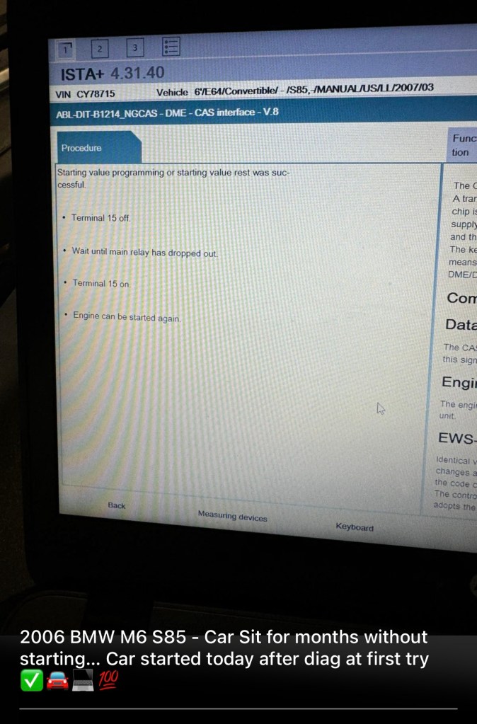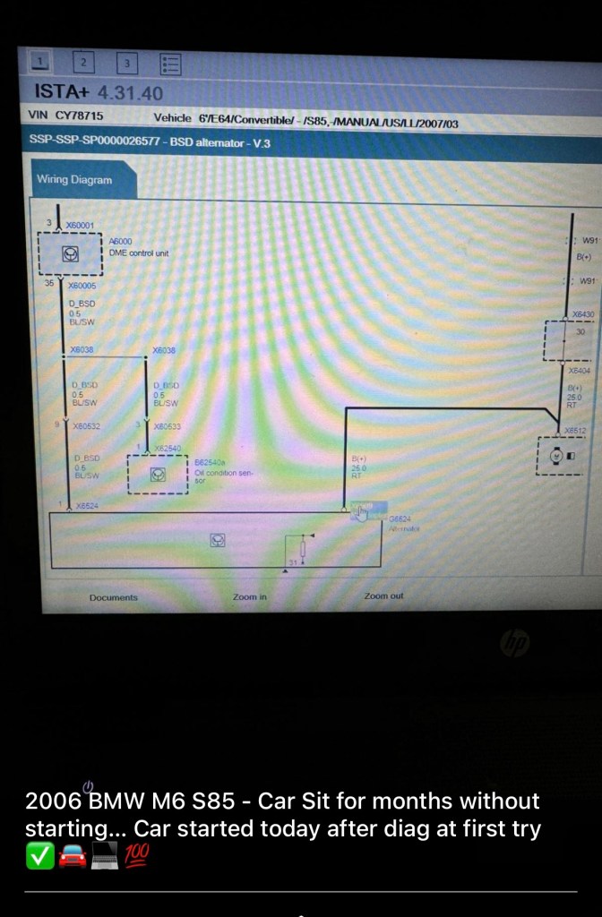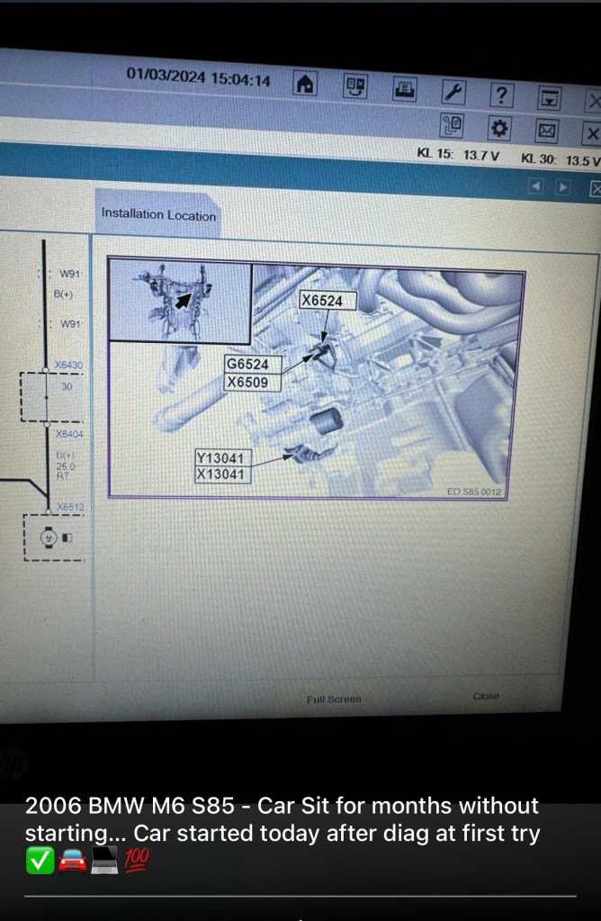 2006 BMW M6 S85 – Car Sit for months without starting… Car started today after diag at first try ✅🚘💻💯