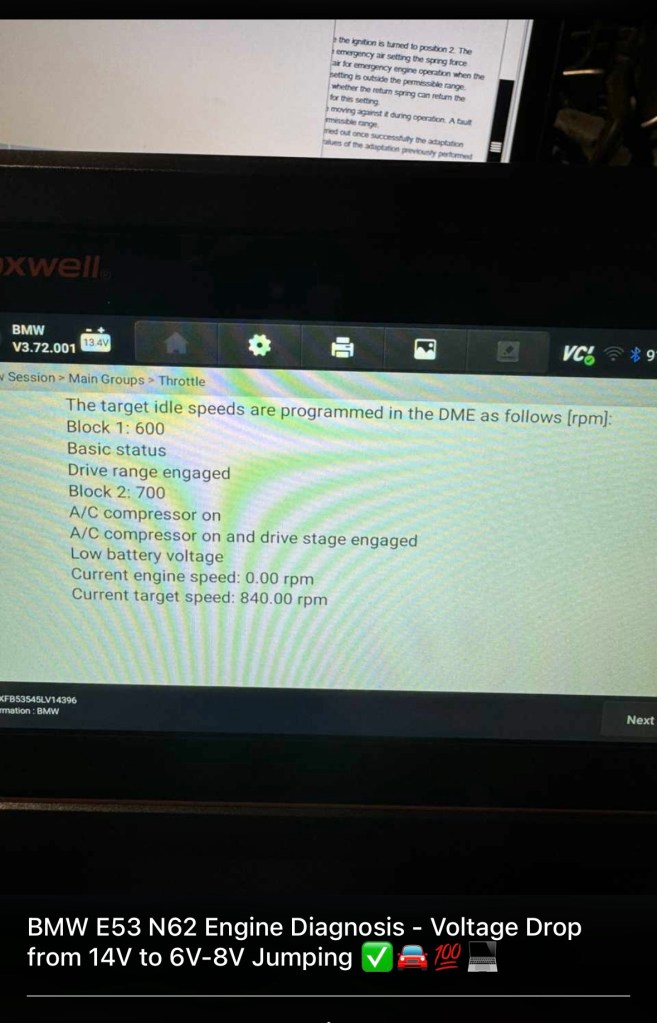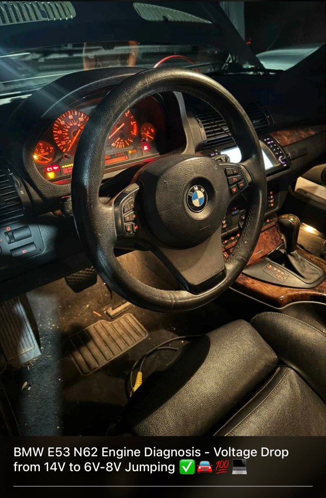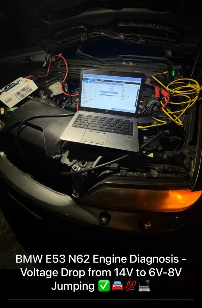 BMW E53 N62 Engine Diagnosis – Voltage Drop from 14V to 6V-8V Jumping ✅🚘💯💻