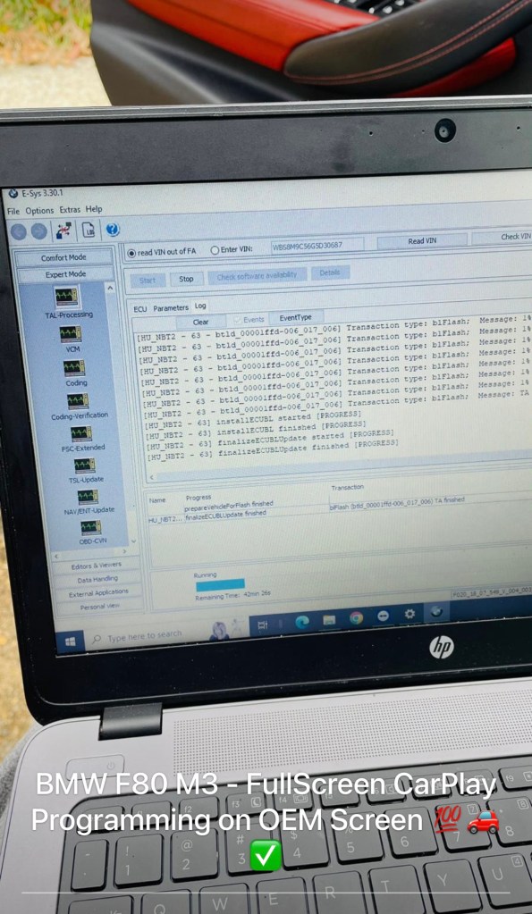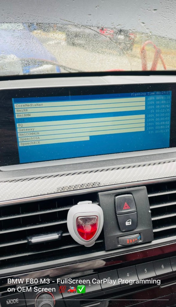 BMW F80 M3 – FullScreen CarPlay Programming on OEM screen. ID5 Flash Update
