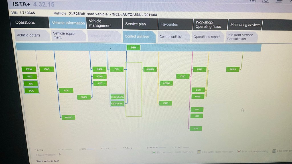 My diagnosis gets done by an OEM Icom with BMW OEM dealer level software connectivity to check the entire vehicle includes but is not limited to battery and electrical, all modules, including body, powertrain, suspension, sensors from front to back, smog, evap and all systems of the vehicle.